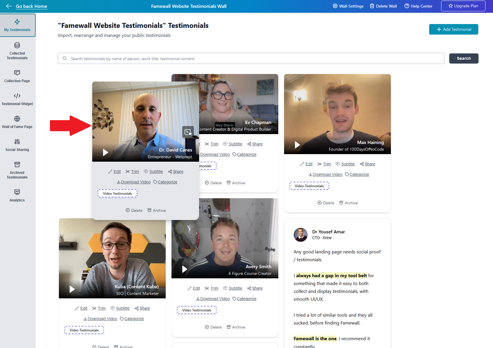 Simply head over to your testimonial wall's home page
