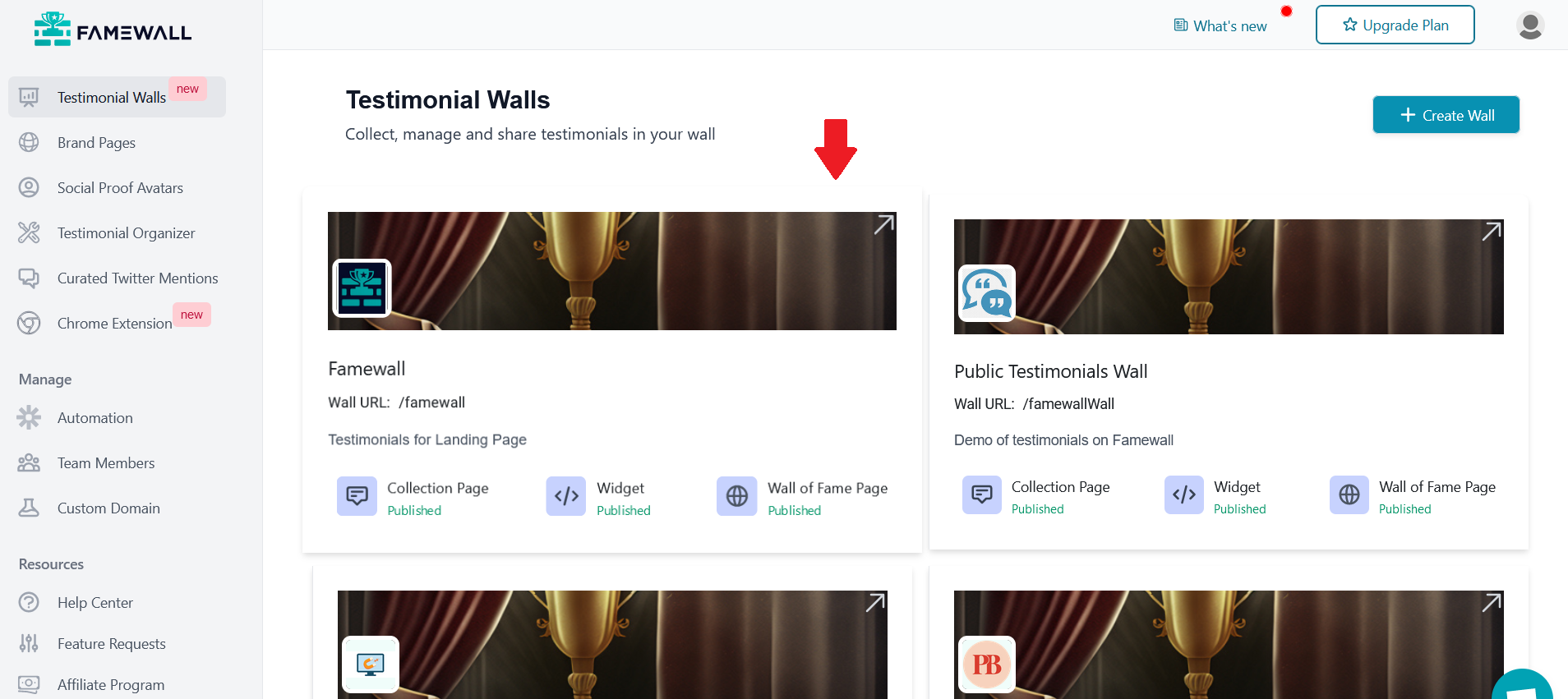 Open your testimonial wall in your home page by clicking on the wall you'd like to edit