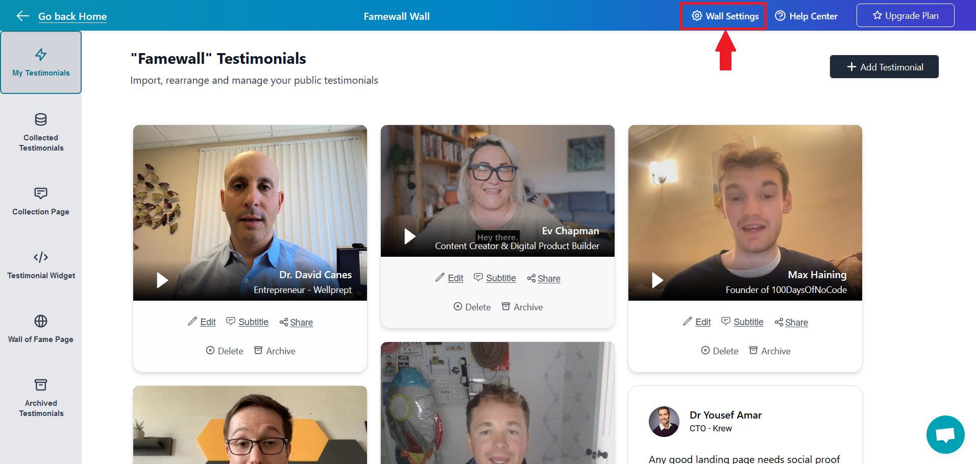 # Editing Testimonial Wall